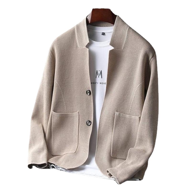 Главная страница > Мужской кардиган-свитер в корейском стиле, однотонный, с воротником, модный повседневный молодежный трикотажный жакет, коллекция 2025 года