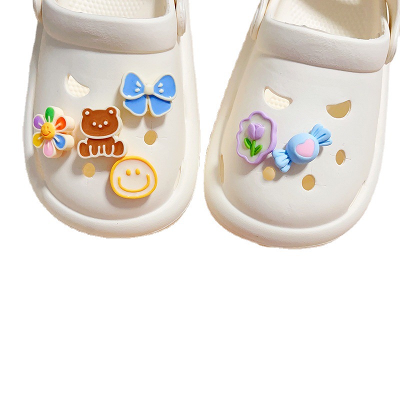 Пещера обувь садовая обувь мультфильм пряжки аксессуары милый DIY улыбающееся лицо семь цветов лук обувь украшения обувь цветок