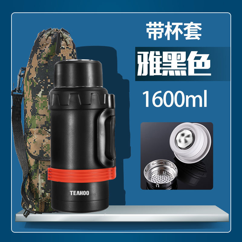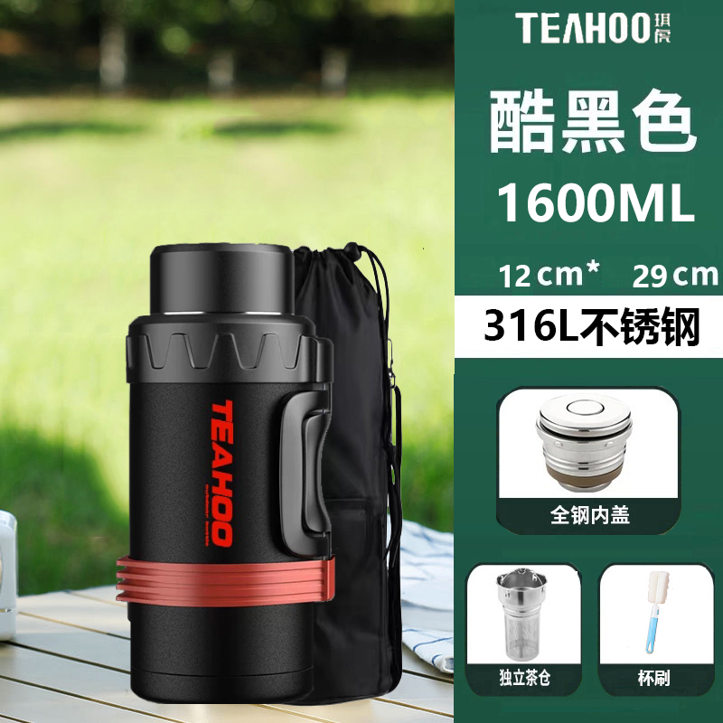 Сталь 316L] черный 1600 мл [стальная внутренняя крышка] крышка кастрюли, независимая щетка для чайной чашки [около 1.5kg воды] стиль ремешка