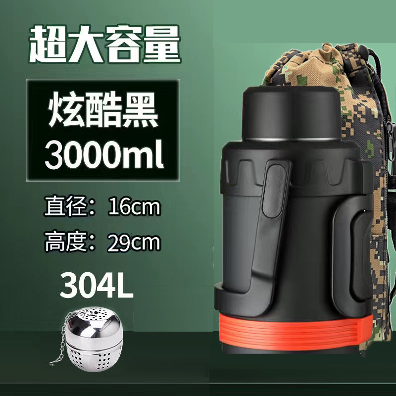 Сталь 304L] черный, 3000 мл [внутренняя крышка из полипропилена] крышка чайника, чайная чашка, кисть [около 3kg воды], стиль ручки