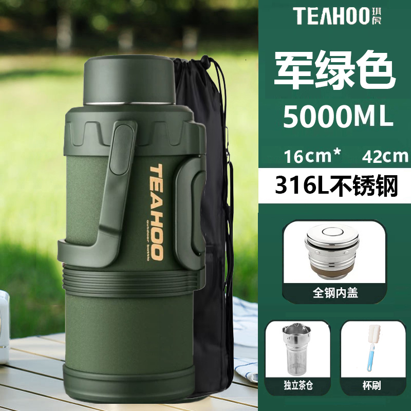 Сталь 316L] Зеленый 5000 мл [Стальная внутренняя крышка] Крышка кастрюли Независимая щетка для чайной чашки [Около 5kg воды] Стиль ручки