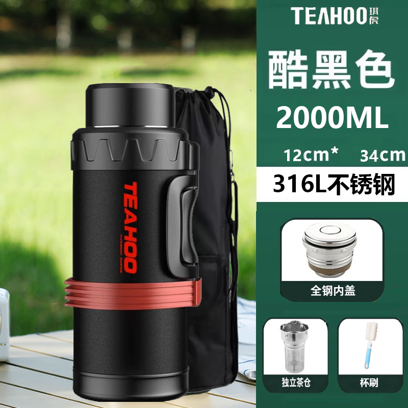 Сталь 316L] черная, 2000 мл [стальная внутренняя крышка] крышка кастрюли, независимая щетка для чайной чашки [около 2kg воды], стиль ремешка