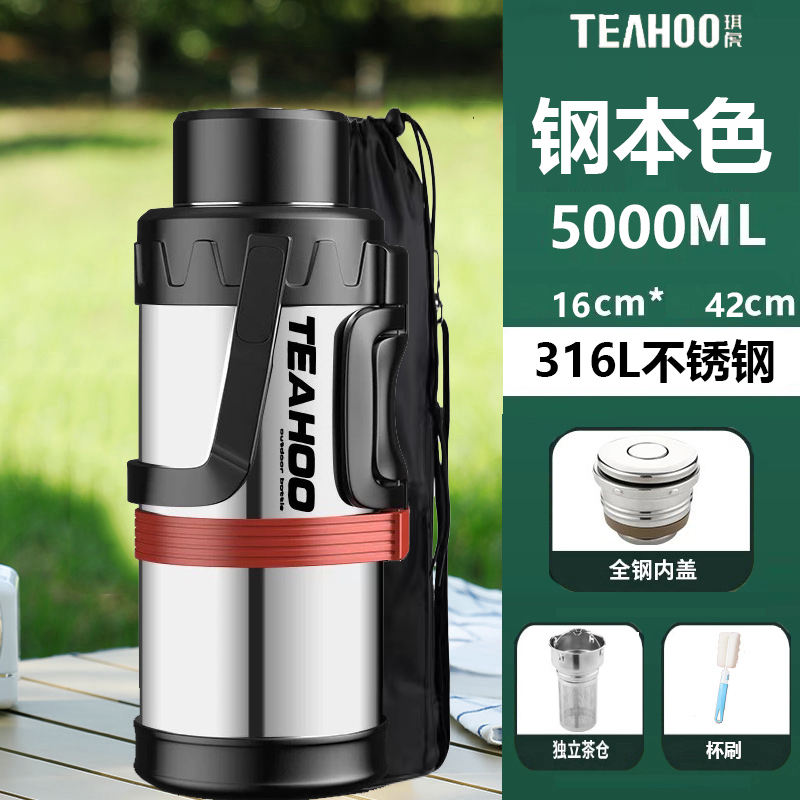 Сталь 316L] Натуральный цвет 5000 мл [Стальная внутренняя крышка] Крышка кастрюли Независимая щетка для чайной чашки [Около 5kg воды] Стиль ручки
