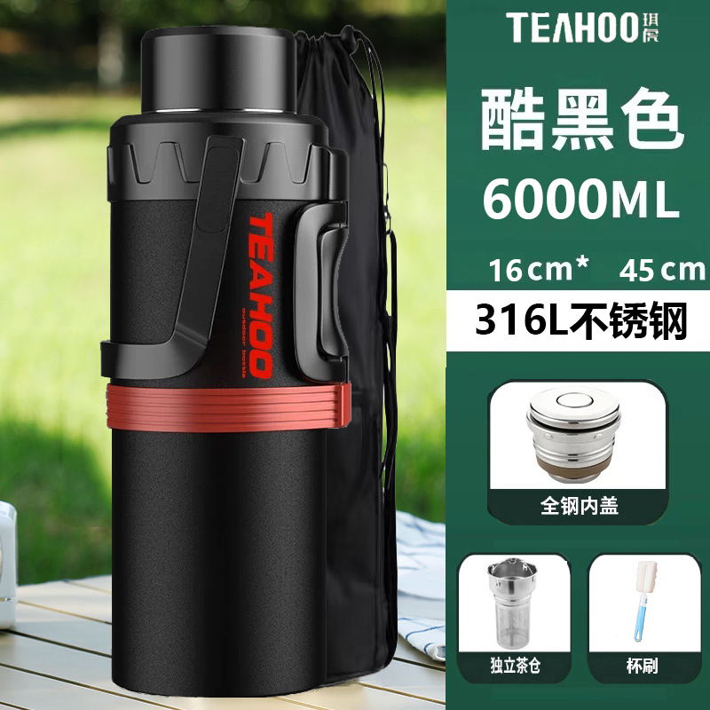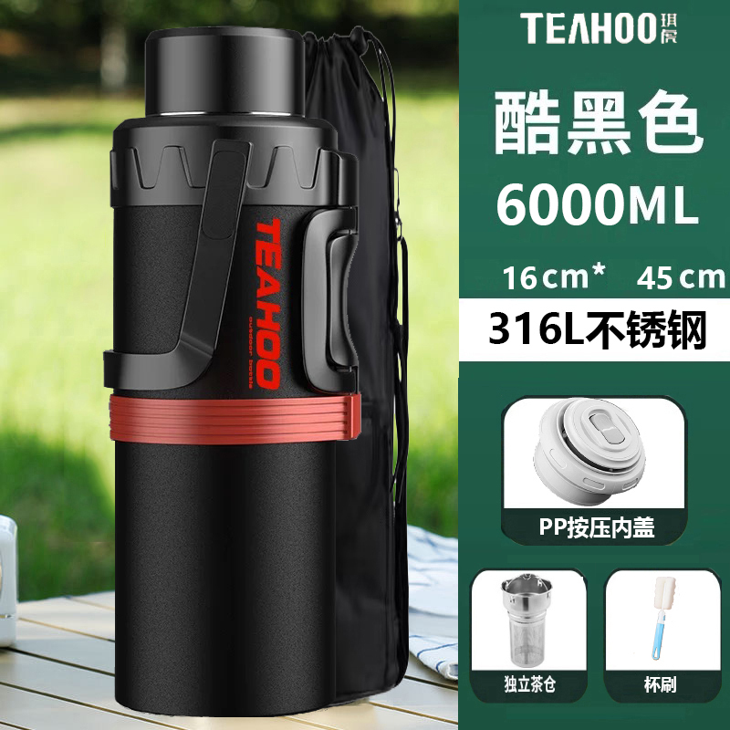 Сталь 316L] черный, 6000 мл [внутренняя крышка из полипропилена] крышка кастрюли, независимая щетка для чайной чашки [около 6kg воды] стиль ручки