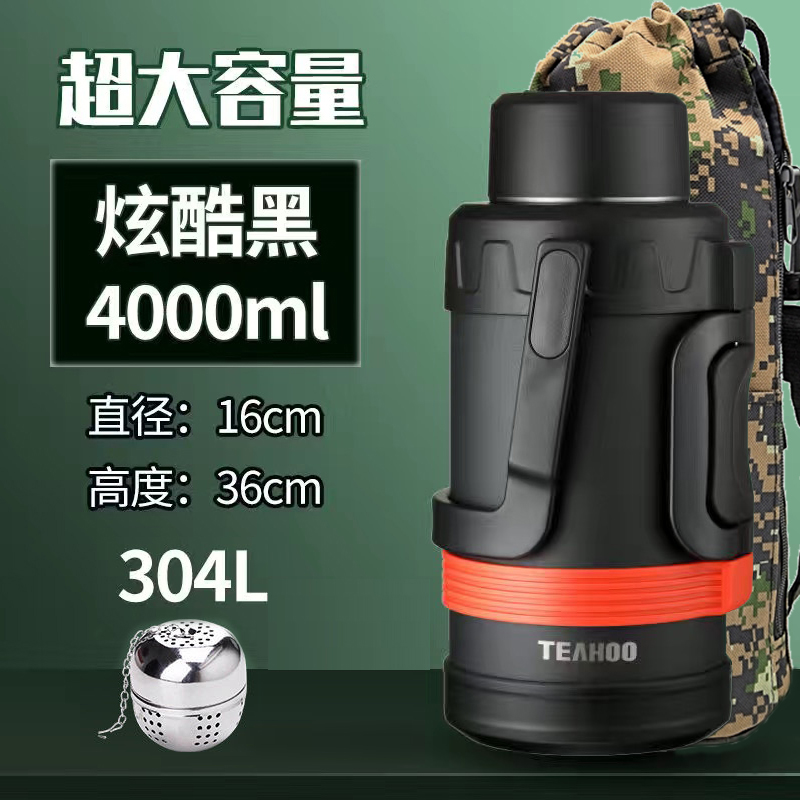 Сталь 316L] черная, 4000 мл [стальная внутренняя крышка] крышка кастрюли, независимая щетка для чайной чашки [около 4kg воды] стиль ручки