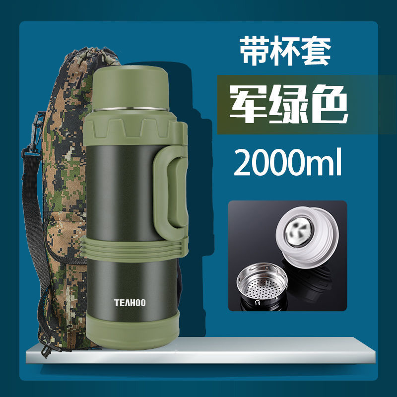 Сталь 316L] Зеленый 2000 мл [Стальная внутренняя крышка] Крышка кастрюли Независимая щетка для чайной чашки [Около 2kg воды] Стиль ремешка