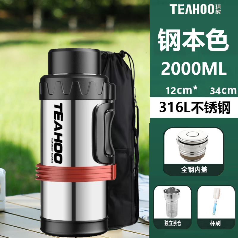 Сталь 316L] True Color 2000ML [Стальная внутренняя крышка] Крышка кастрюли Независимая щетка для чайной чашки [Около 2kg воды] Стиль ремешка