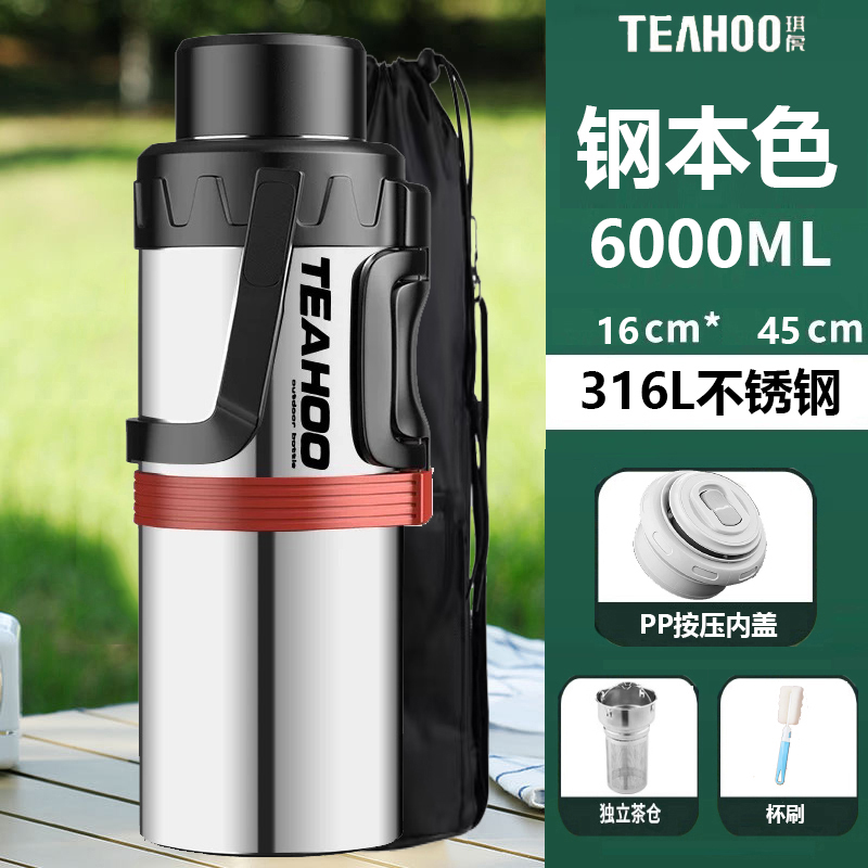 Сталь 316L] Натуральный цвет 6000 мл [Стальная внутренняя крышка] Крышка кастрюли Независимая щетка для чайной чашки [Около 6kg воды] Стиль ручки