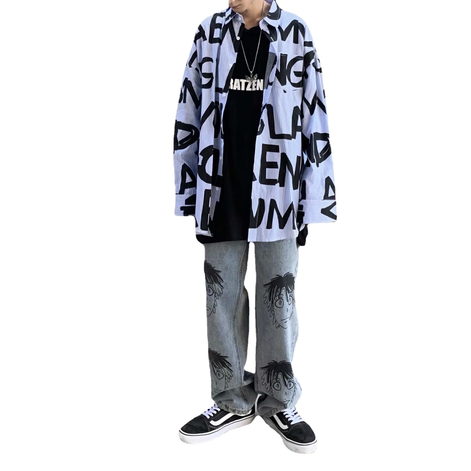 Главная страница > Рубашка National Mody ins с принтом граффити, Мужская красивая модная брендовая рубашка с длинным рукавом, весенне-осенняя куртка в Корейском стиле в стиле Харадзюку