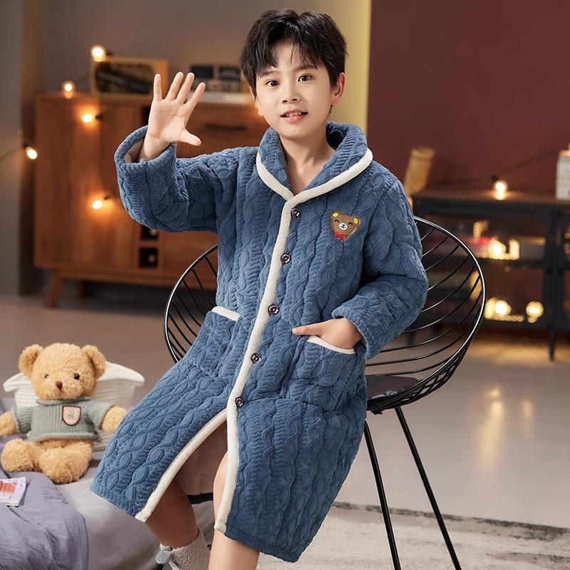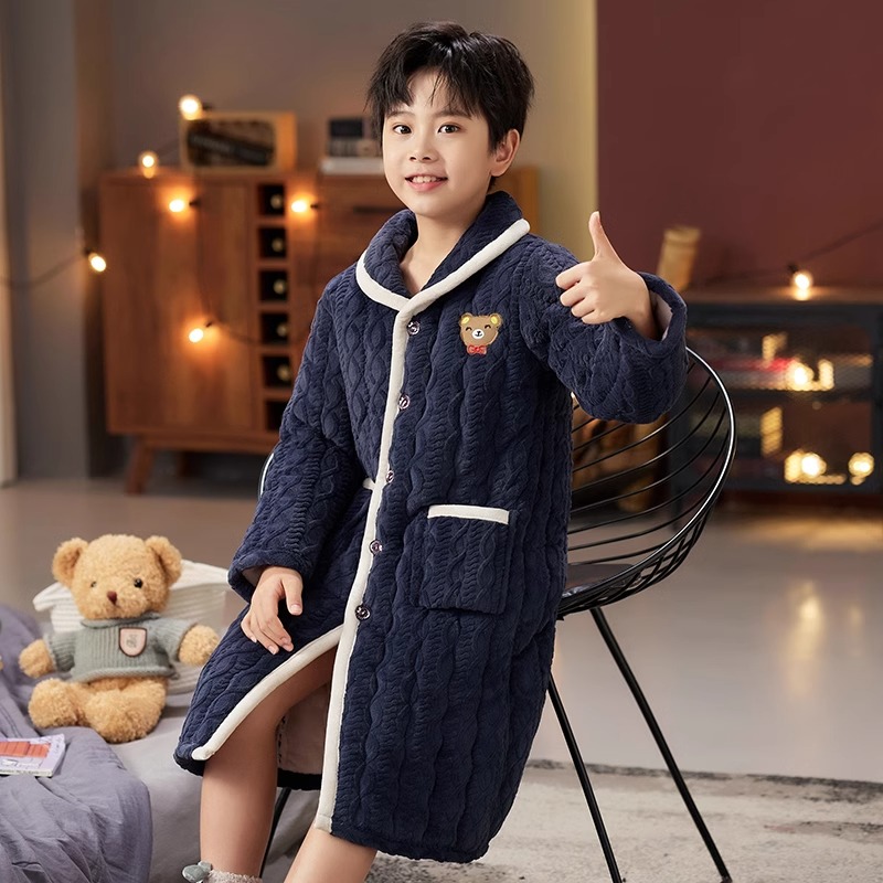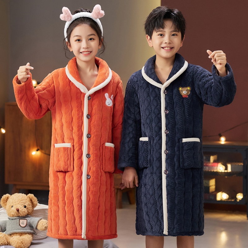 Детская ночная одежда для мальчиков зимний бархат утолщение для девочек длинный трехслойный хлопчатобумажный пижама подростковый халат