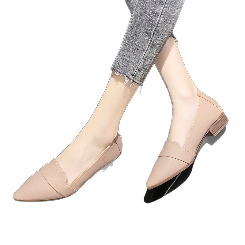 Главная страница > Весна 2021, новые корейские туфли без шнуровки на низком каблуке с острым носком, Женские однотонные туфли на толстом каблуке из мелкой мягкой кожи, однослойные туфли