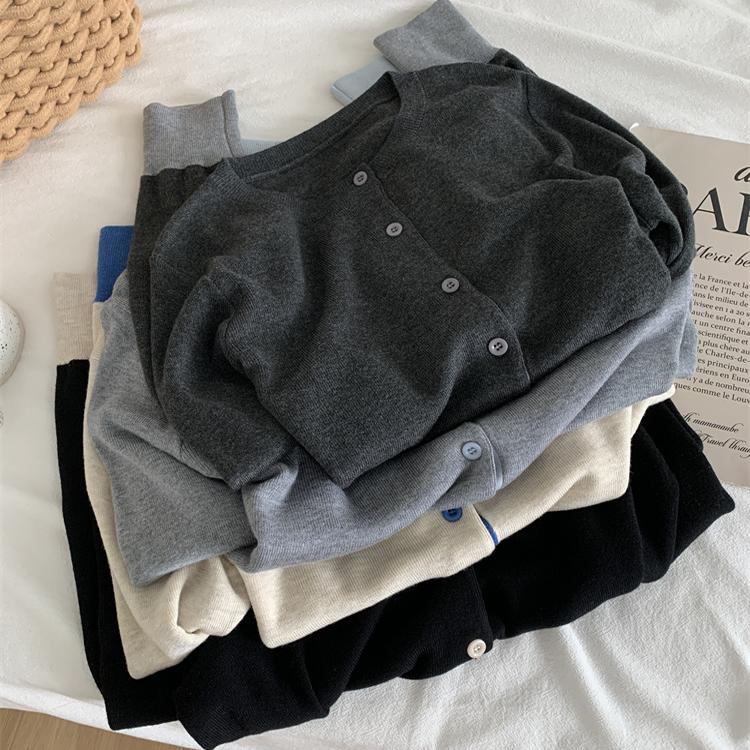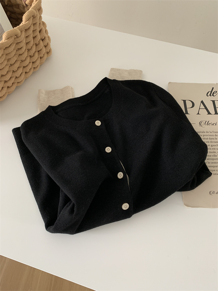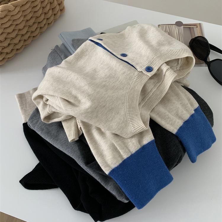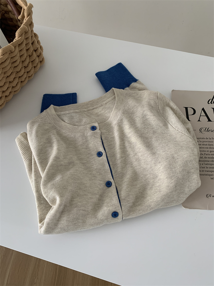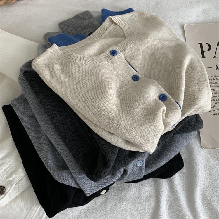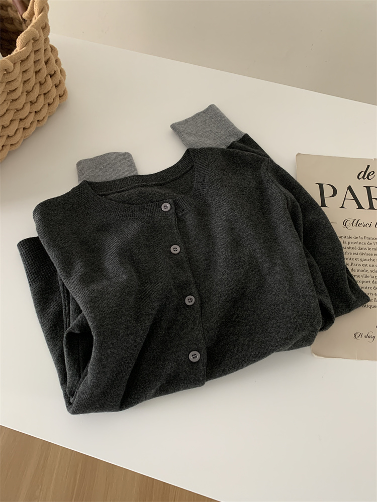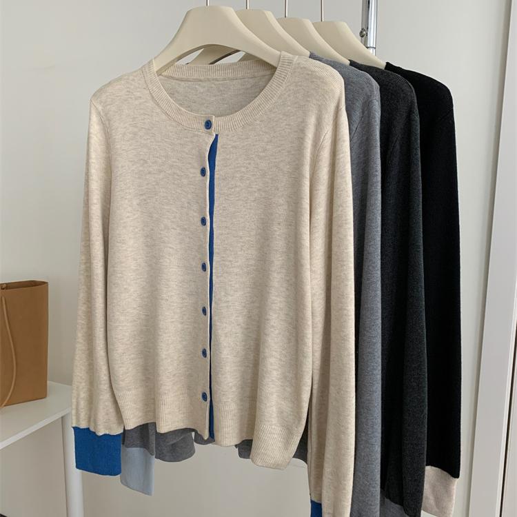 Главная страница > Нежный темперамент контрастный цвет с длинными рукавами и круглым вырезом трикотажный кардиган для женщин ранней осенью тонкий мягкий клейкий осенний однобортный свитер пальто