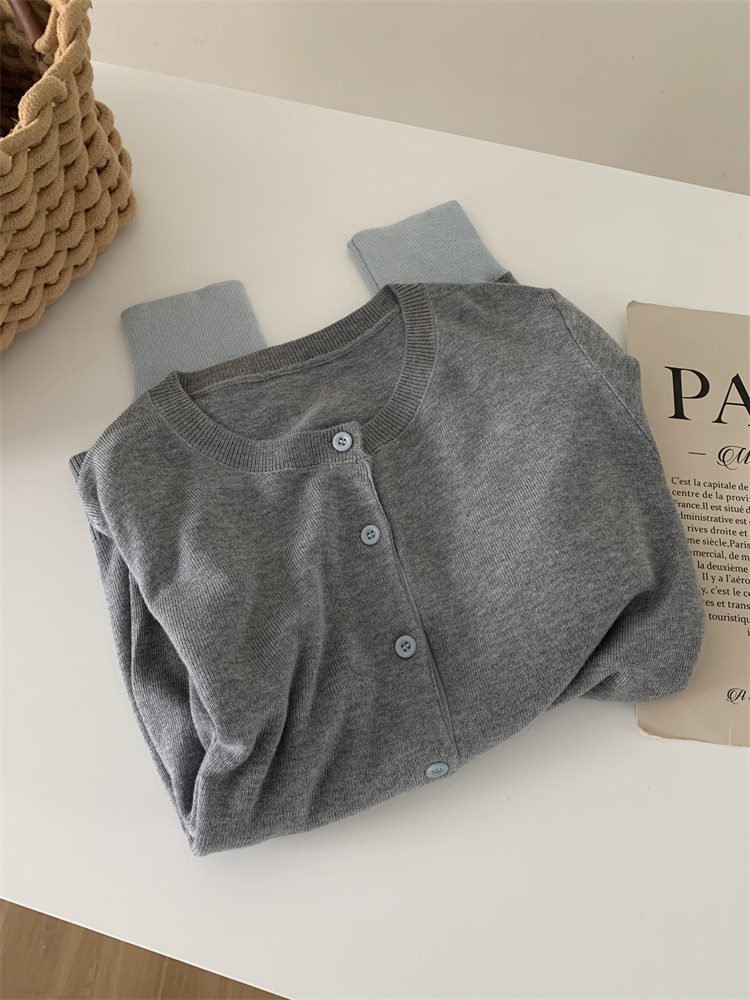 Нежный темперамент контрастный цвет с длинными рукавами и круглым вырезом трикотажный кардиган для женщин ранней осенью тонкий мягкий клейкий осенний однобортный свитер пальто