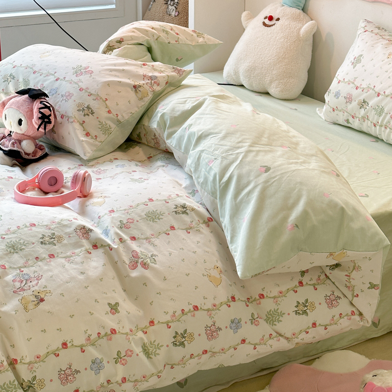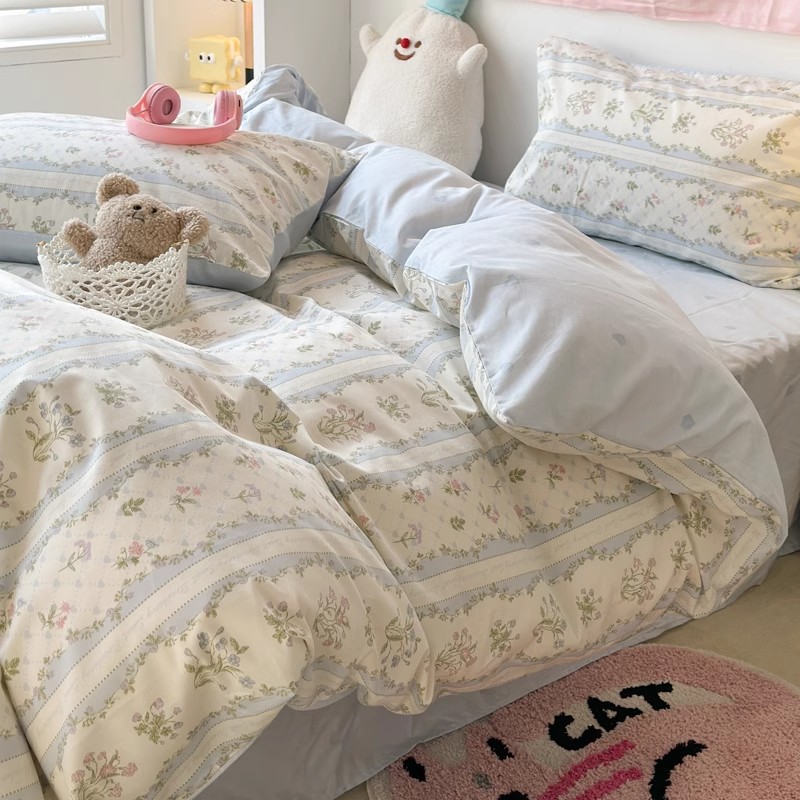 Главная страница > Маленькая свежая кровать из чистого хлопка, комплект из четырех предметов, чистое хлопок, такая же постельное белье, пододеяльник с цветочным принтом, простыни для общежития, комплект из трех предметов Shenheng