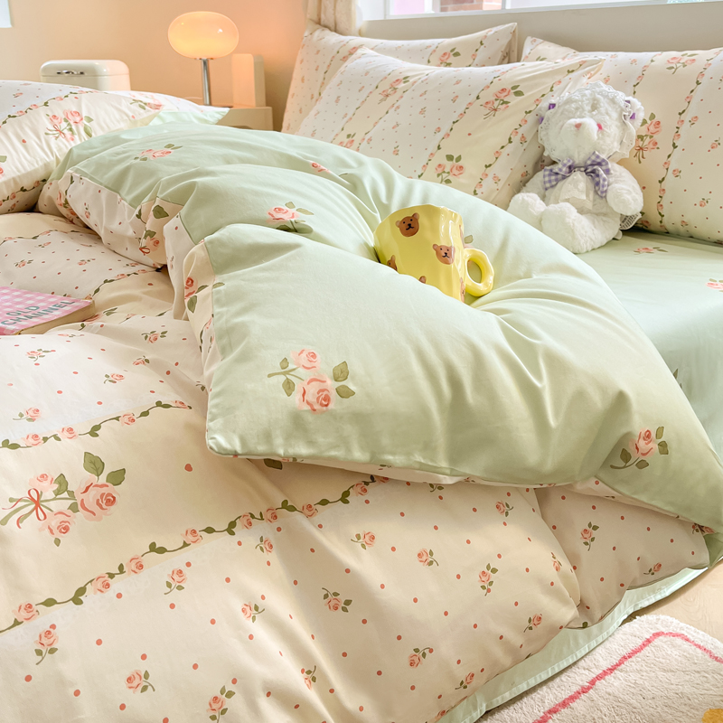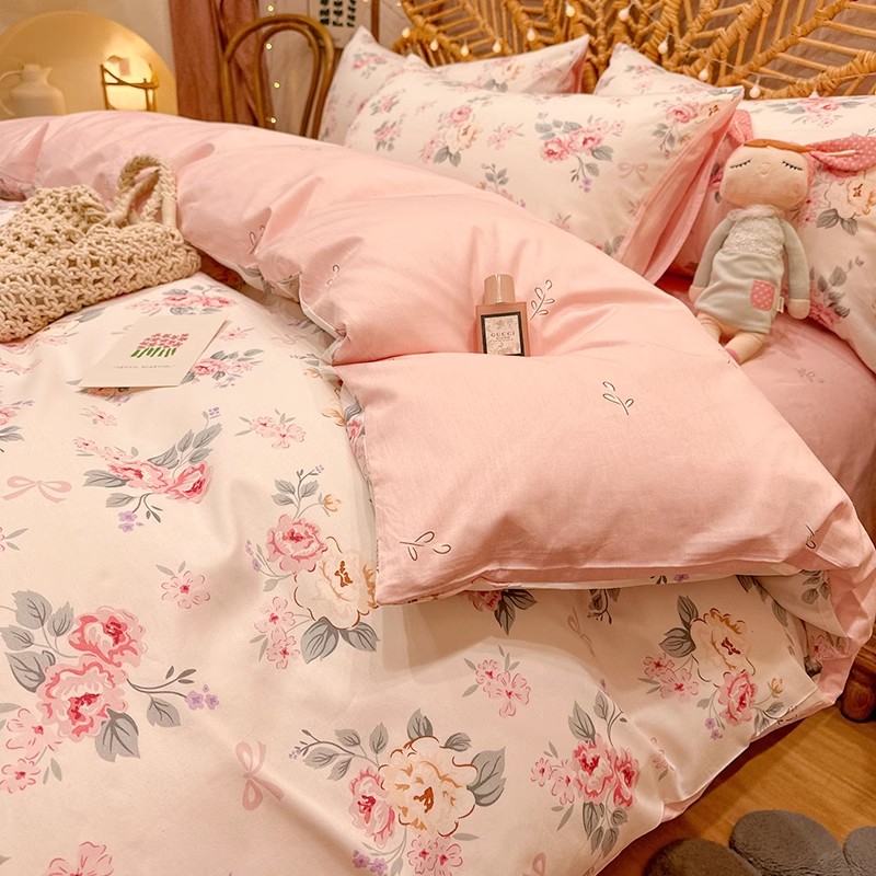 Маленькая свежая кровать из чистого хлопка, комплект из четырех предметов, чистое хлопок, такая же постельное белье, пододеяльник с цветочным принтом, простыни для общежития, комплект из трех предметов Shenheng