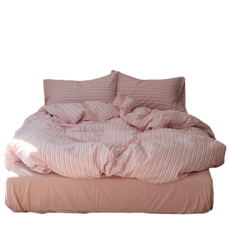 Главная страница > Love Bubble Powder Pinstripe Чистая хлопковая кровать из выстиранного хлопка Пододеяльник из четырех предметов Простая простыня из хлопка