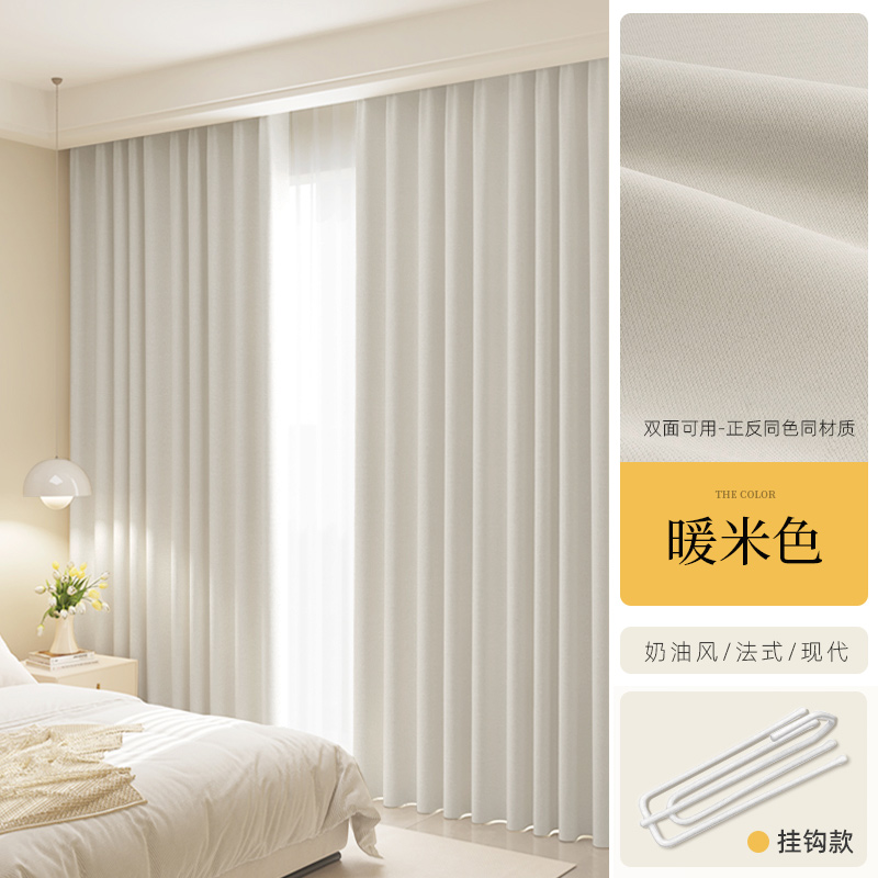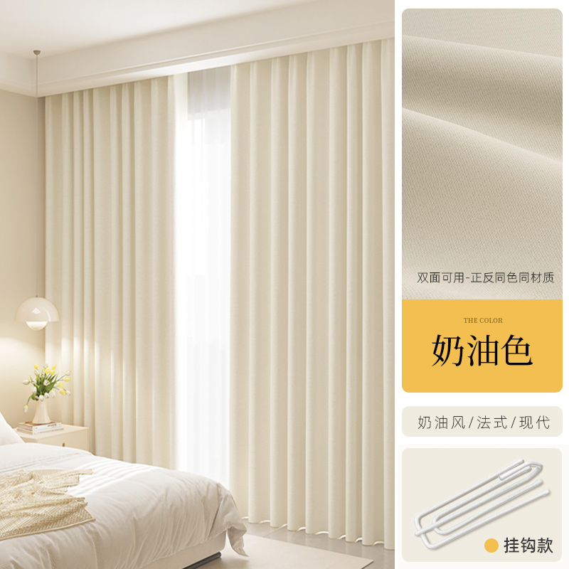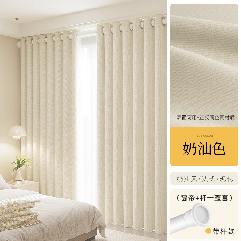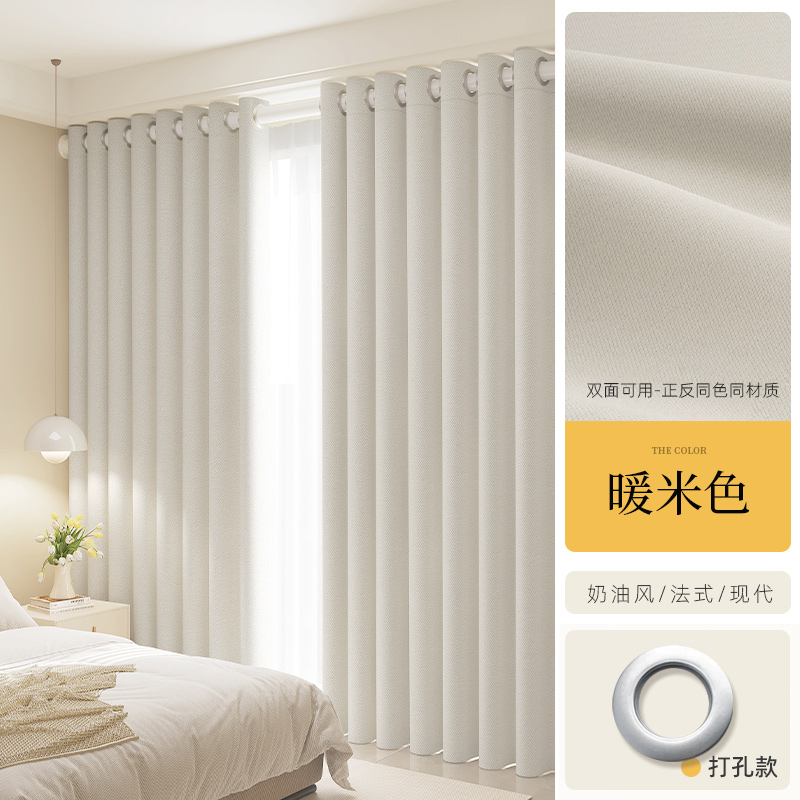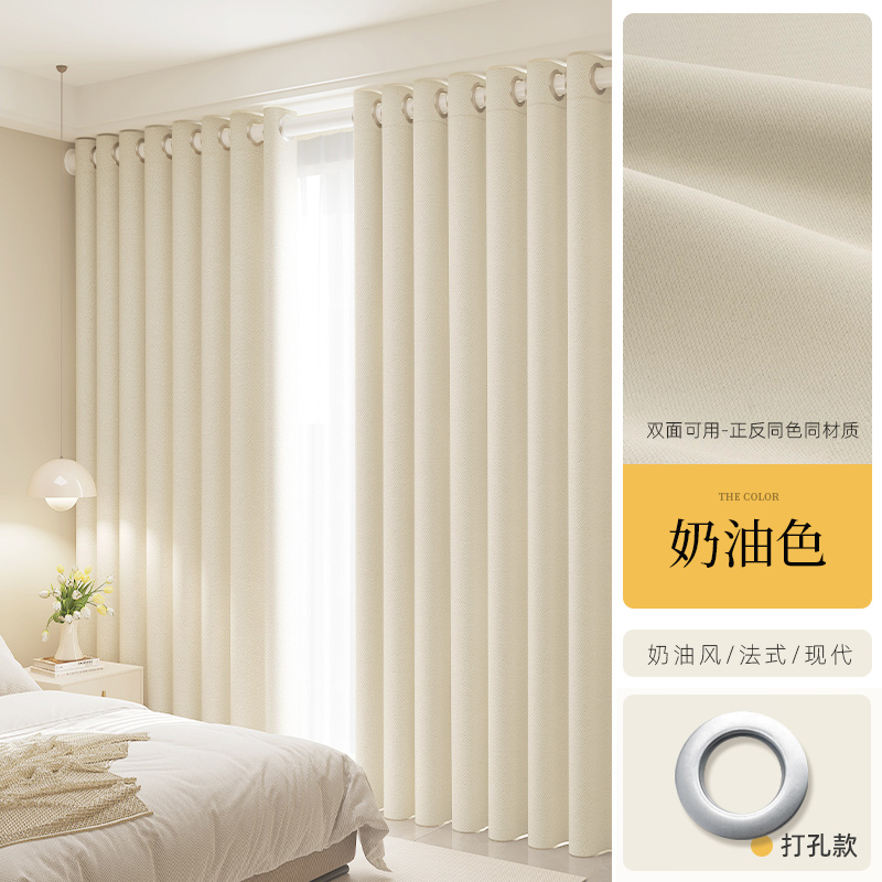 Шторы для спальни в кремовом стиле, полная затемнение, новинка 2025 года, звукоизоляция, защита от солнца и теплоизоляция для гостиной, установка без перфорации, солнцезащитный козырек