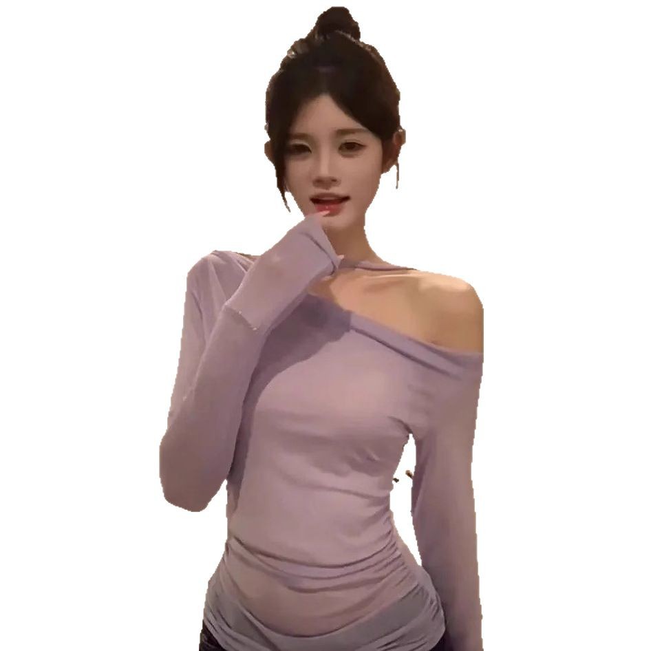 Главная страница > Прямые продажи с фабрики, сексуальная сетчатая футболка с открытыми плечами в стиле чистой страсти, женская летняя новая тонкая сексуальная футболка с косыми плечами, солнцезащитный топ