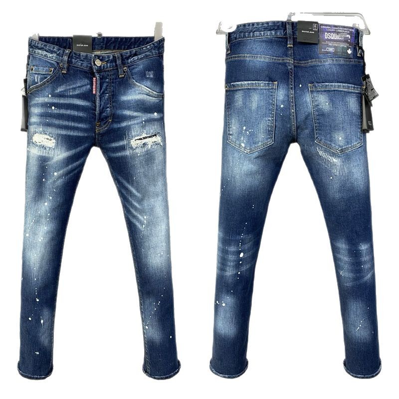 Главная страница > 9953 новые мужские джинсовые брюки D2 патч индивидуальность европейская станция ветровой шлифовальные белые прямые ноги трансграничные приливы джинсы