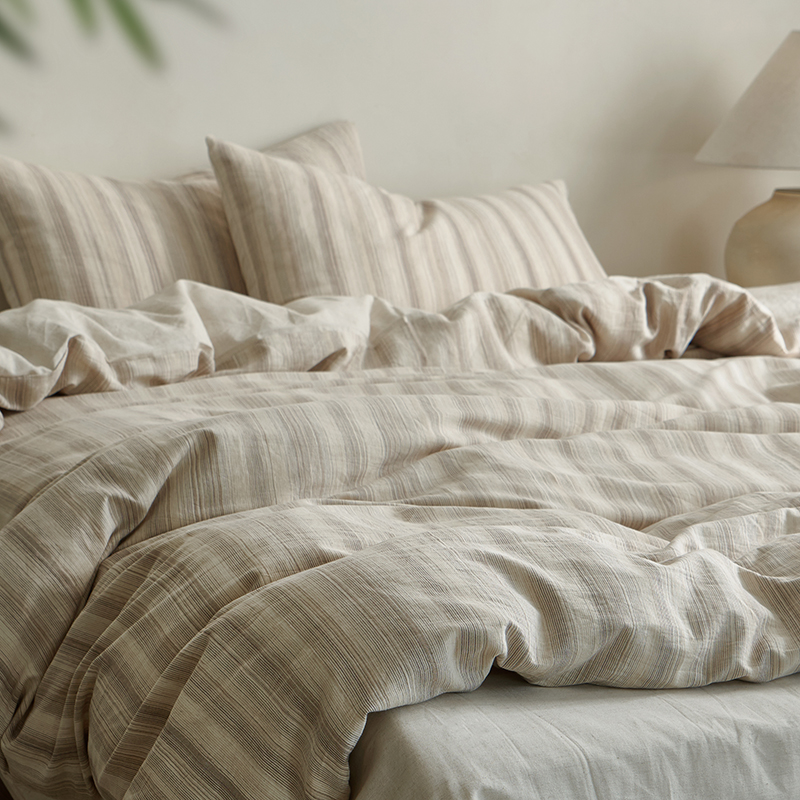 Главная страница > Качество Чувство Тканый хлопок и льна набор из четырех частей 20% лен простоватый японский простой полосатый постельное белье 1.8m простыни одеяло