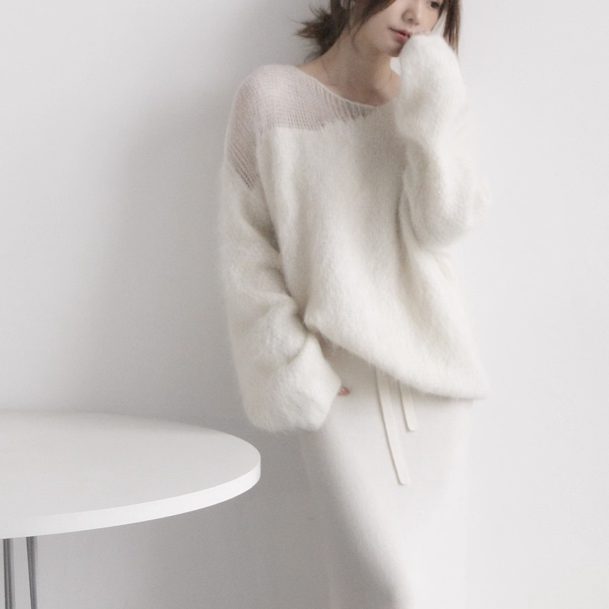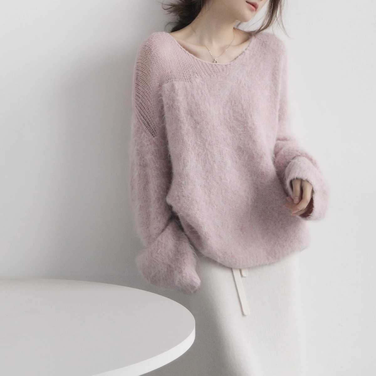 Главная страница > Французский темперамент нежный мягкий мягкий свитер из мохера женский толстый и свободный ленивый ветер полый трикотаж топ