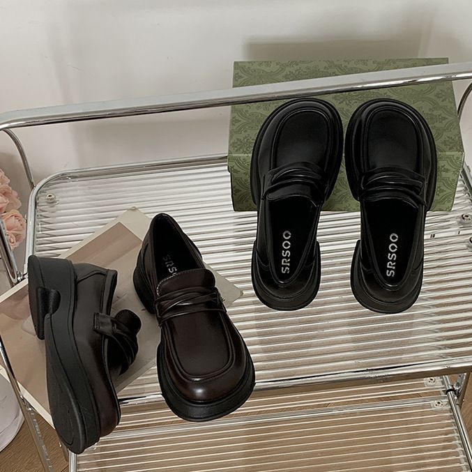 Главная страница > Женские универсальные кожаные туфли с круглым носком на толстой подошве в стиле ретро, новинка осени 2025, французские лоферы на массивном каблуке без застежек