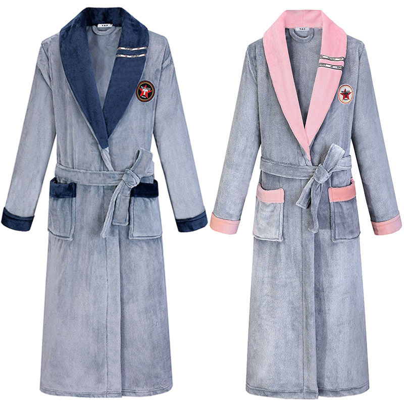 Главная страница > Новый зимний утолщенный фланелевый халат для женщин, домашняя одежда большого размера для мужчин, парные пижамы из кораллового флиса с отложным воротником.