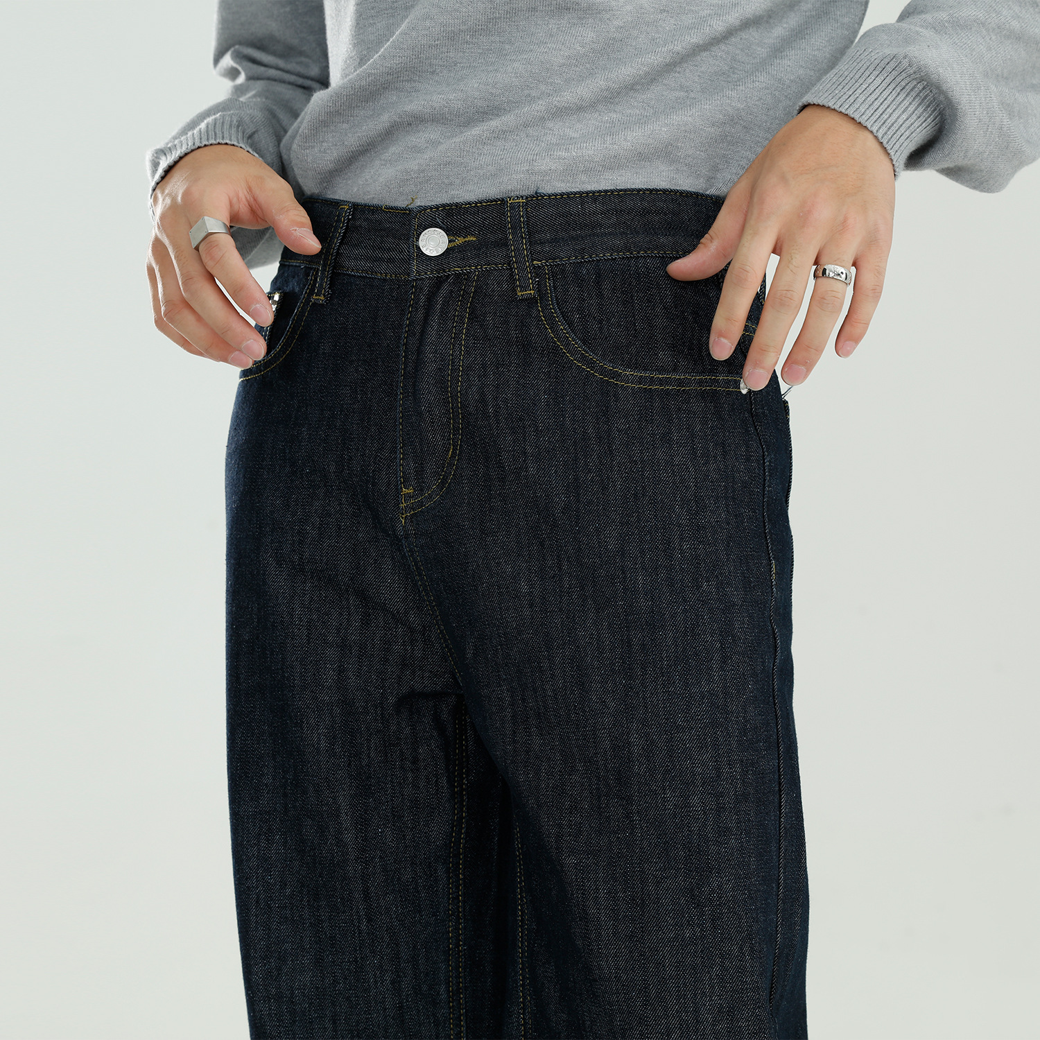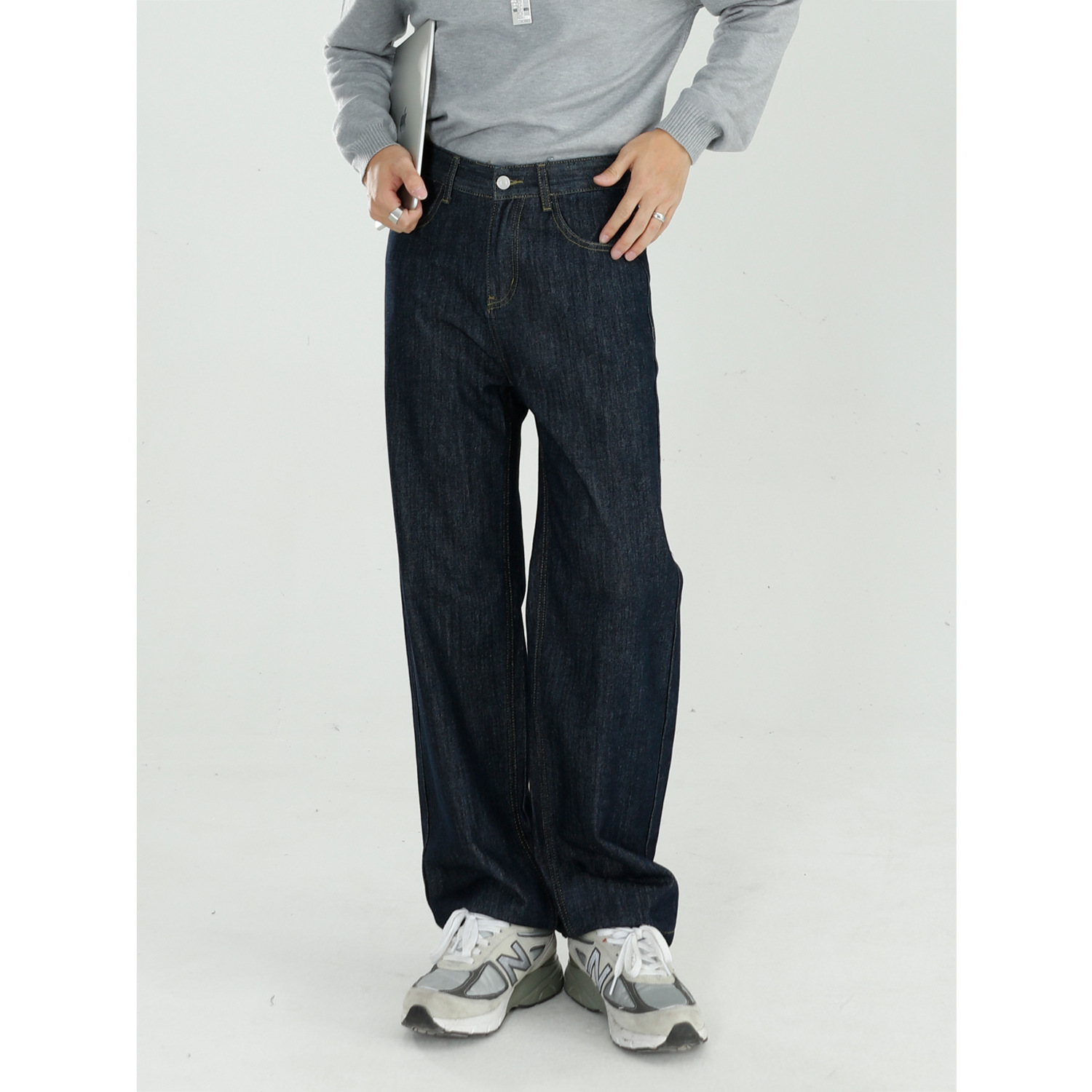 Главная страница > MTLCLOTHES мужская одежда | Новые универсальные прямые джинсы свободного кроя с драпировкой в Корейском стиле с черными деталями для мужчин