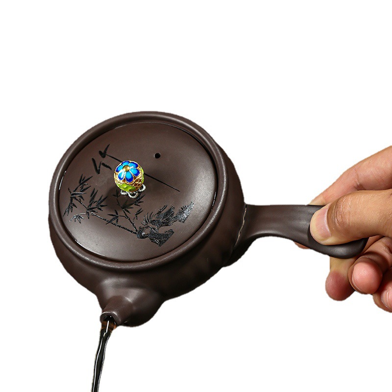 Главная страница > Фиолетовый песочный чайник Чайник с фильтром кунг-фу Бытовой керамический каменный ковш Горшок с гравировкой Си Ши Горшок Один горшок Чайный набор