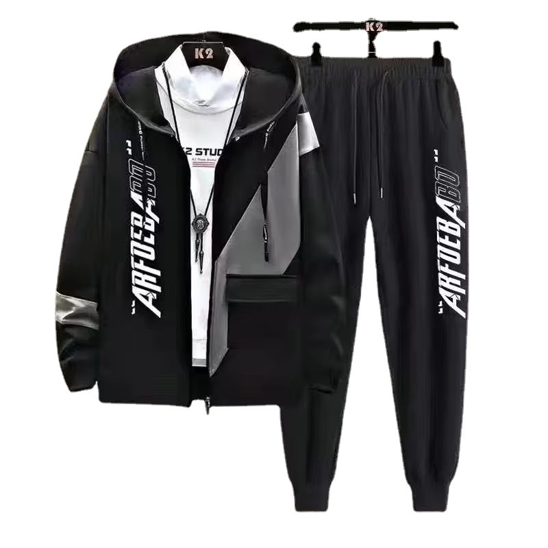Главная страница > Корейское модное пальто, мужской весенне-осенний повседневный костюм, мужской осенний красивый комплект со свитером с капюшоном для подростков