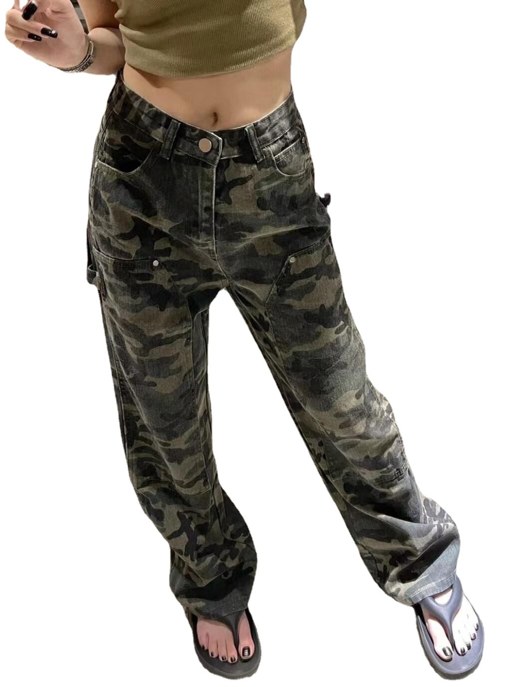 Главная страница > Хип-хоп камуфляжный комбинезон в американском стиле, женские летние свободные прямые повседневные брюки с высокой талией, широкие модные брюки