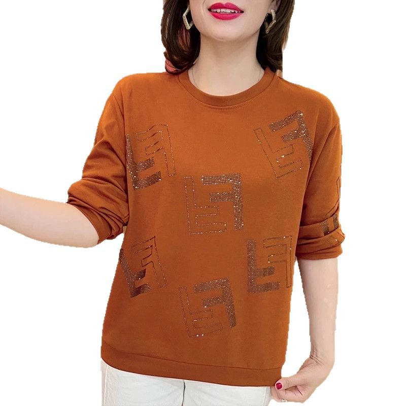 Главная страница > Весенний и осенний новый костюм мамы с круглым вырезом с принтом нижняя рубашка большого размера с длинными рукавами свитер женская свободная футболка женская топ