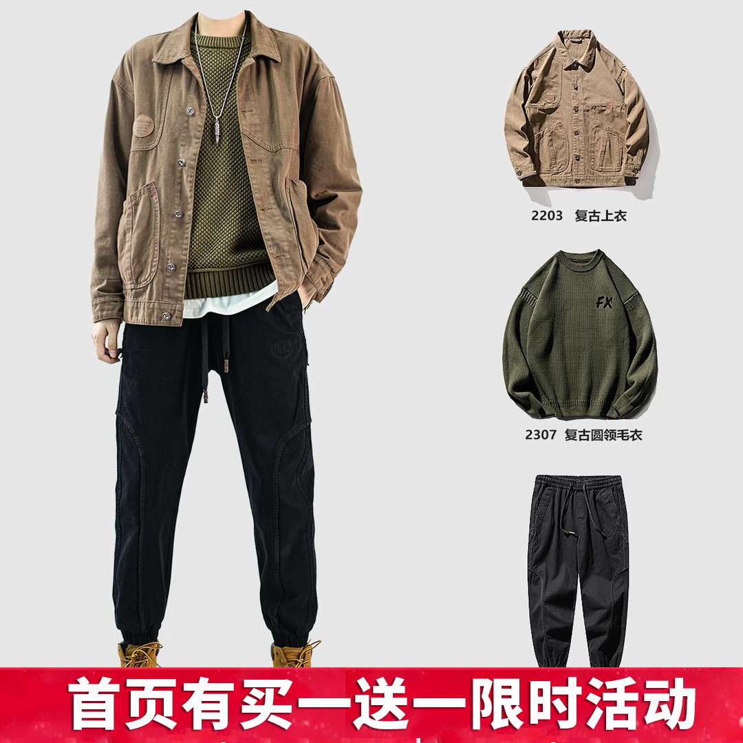 Главная страница > Американский спортивный костюм, Мужская весенне-осенняя Тяжелая охотничья куртка в стиле ретро, комплект повседневной рабочей одежды из трех предметов