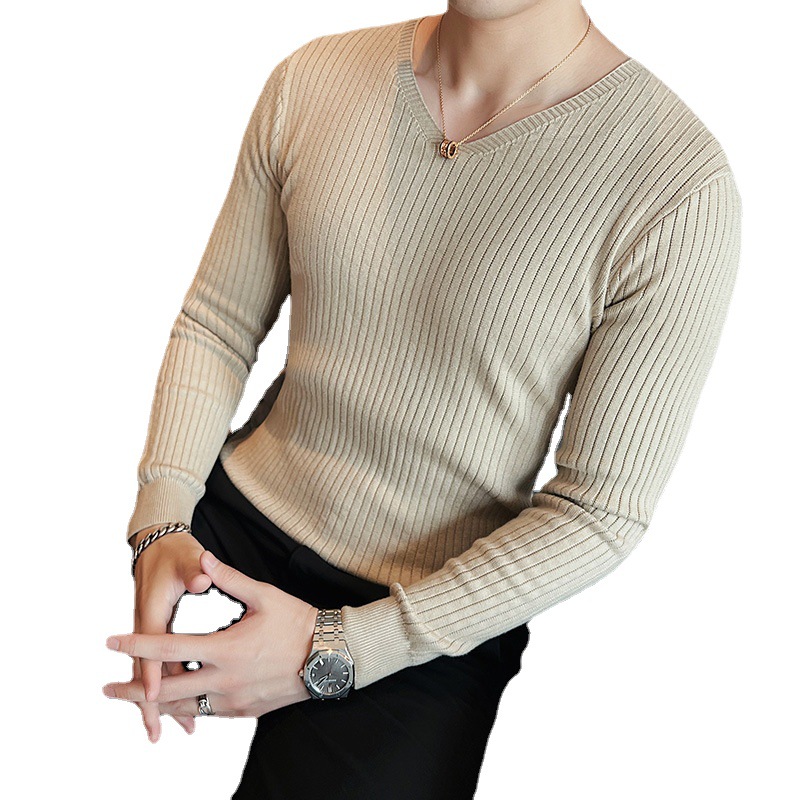 Одежда интернет-знаменитостей, Высокоэластичный сексуальный мужской тонкий свитер с V-образным вырезом, мужской тонкий пуловер с куриным воротником, трикотажная нижняя рубашка
