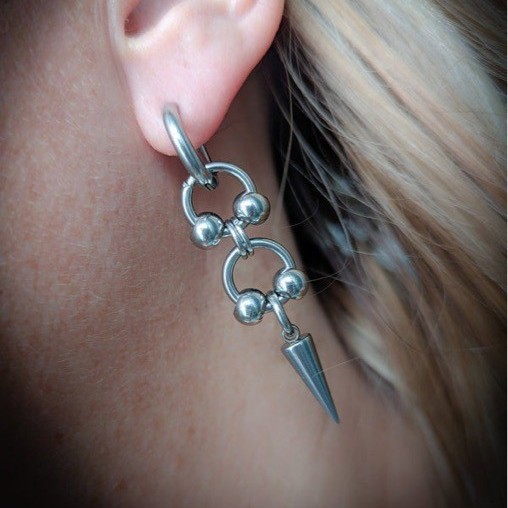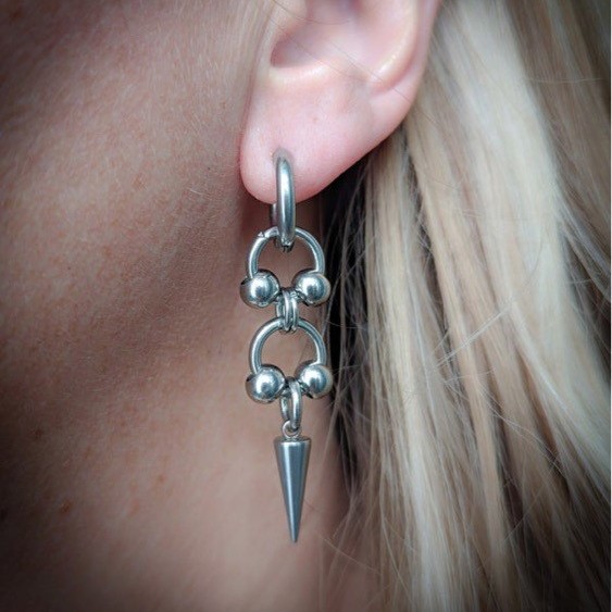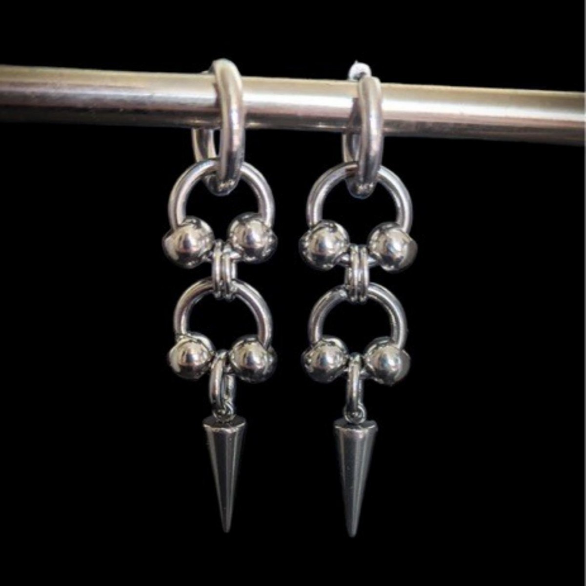 Новый стиль трансграничной внешней торговли готический панк из нержавеющей стали серьги леди заклепки остроконечный конус двойной кольцо панк завод прямых продаж