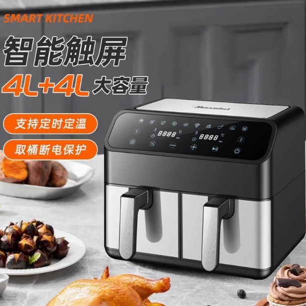 Аэрофритюрница 8 л с двойной кастрюлей, большая емкость, 8 л, электрическая фритюрница с двумя отделениями, многофункциональная бытовая аэрофритюрница из нержавеющей стали