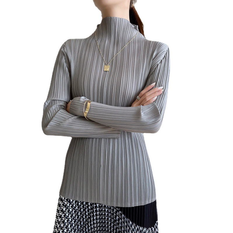 Главная страница > Футболка с плиссированной рубашкой женский базовый весенний и осенний костюм маленький стоячий воротник свободный дикий дом