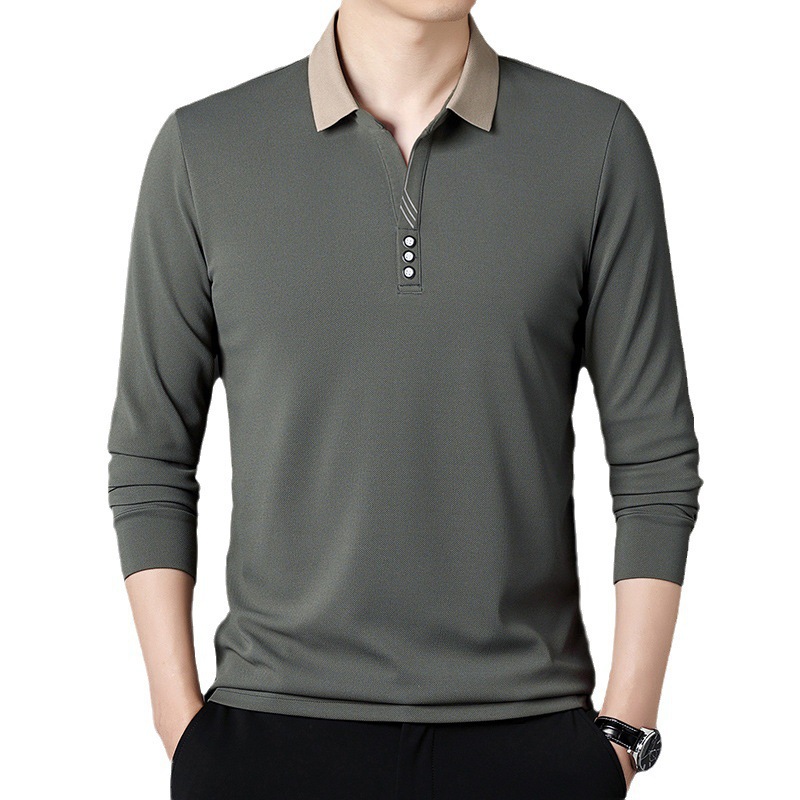 Главная страница > [Противоречие от морщин] Мужская футболка с длинным рукавом с отворотом сплошной цвет повседневная дикая модная рубашка поло