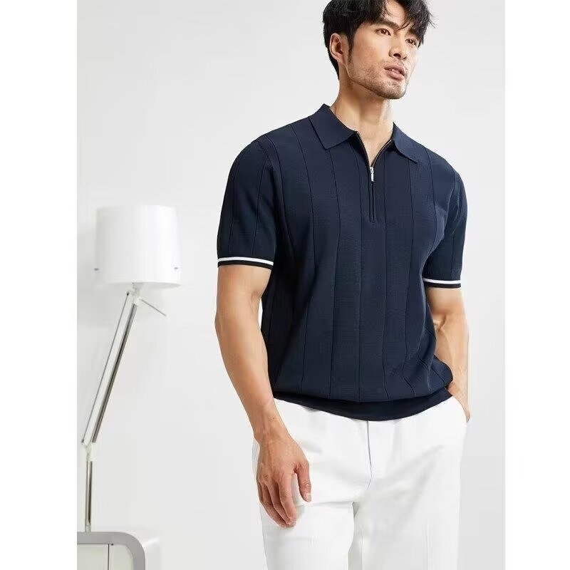Фабрика прямая продажа вязания из ледяного шелка для мужчин высокого уровня летом легкая роскошная мужская одежда приливная модная рубашка с короткими рукавами поло полузастежка-молния