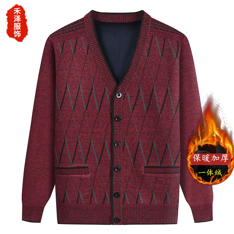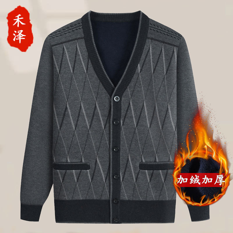 Главная страница > Кардиган для папы, мужской вязаный свитер с длинными рукавами, утепленное флисовое Пальто Для дедушки среднего и пожилого возраста, весна, осень и зима