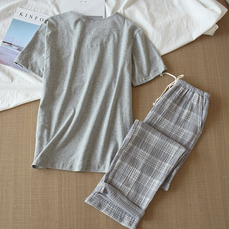 Главная страница > Новый летний мужской Пижамный костюм, тонкие трикотажные хлопковые брюки с короткими рукавами, Повседневная Свободная Домашняя одежда в японском стиле