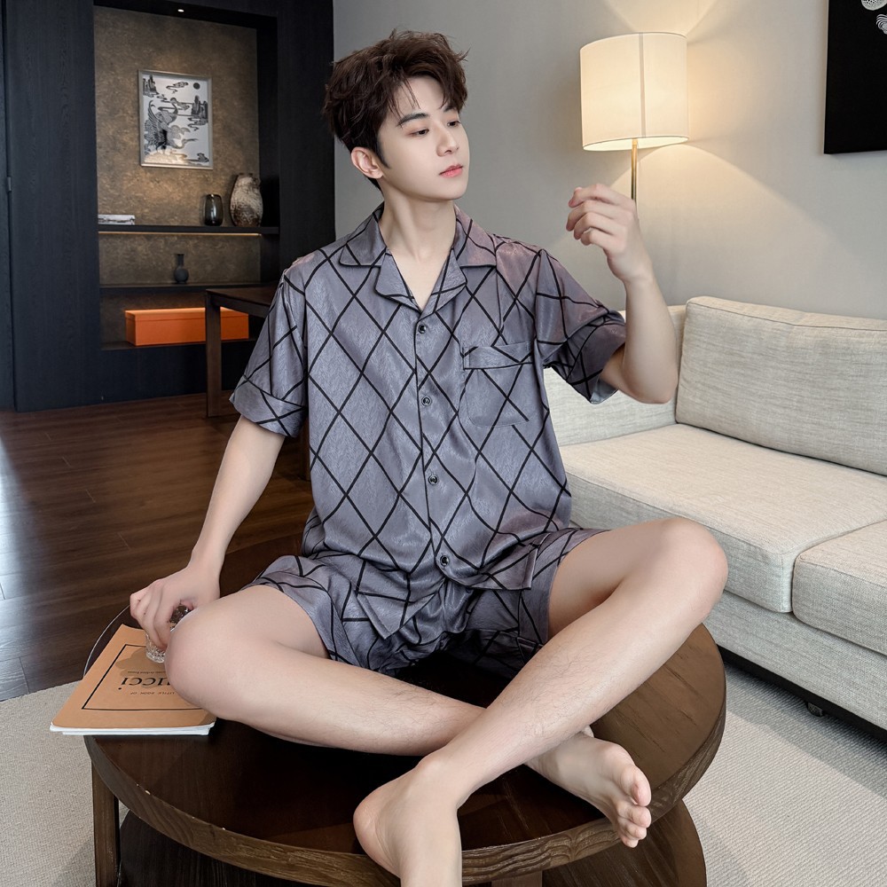 Главная страница > Пижама мужской 2025 весна лето новые шорты с короткими рукавами кардиган набор с принтом из ледяного шелка