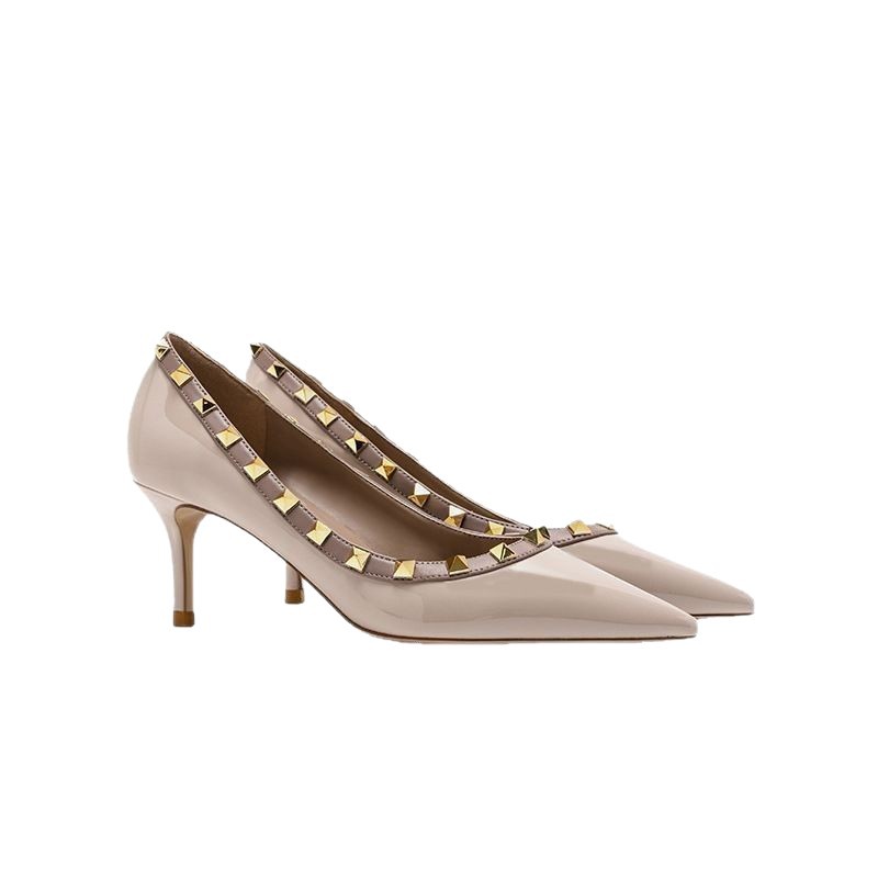 Главная страница > Женские туфли на высоком каблуке с заклепками, весна 2024, новые интернет-знаменитости, лакированные кожаные туфли на шпильке с острым носком, универсальные свадебные туфли телесного цвета на плоской подошве