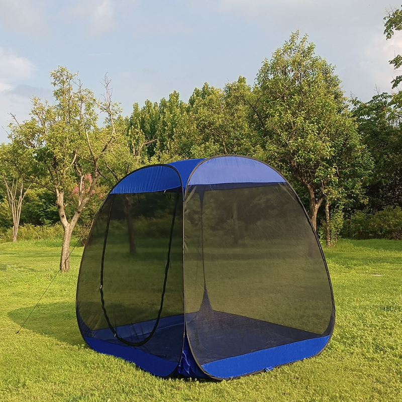 Сапфирово-синий (2.0* 2.0m) с вентиляцией со всех сторон, в комплекте идет сумка для хранения, ветровая веревка и колышки для крепления.