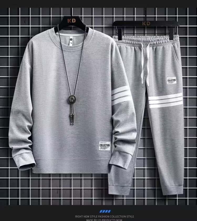 Главная страница > Вафельный костюм мужской на весну и осень Модный повседневный спортивный 2023 новый костюм с брюками с длинными рукавами подходящий красивый
