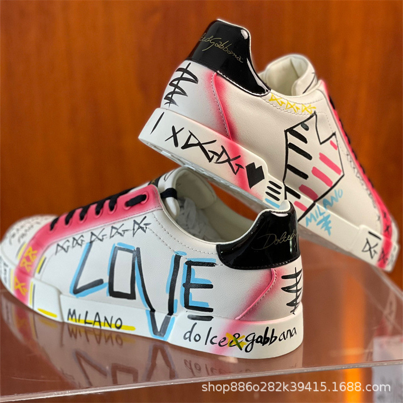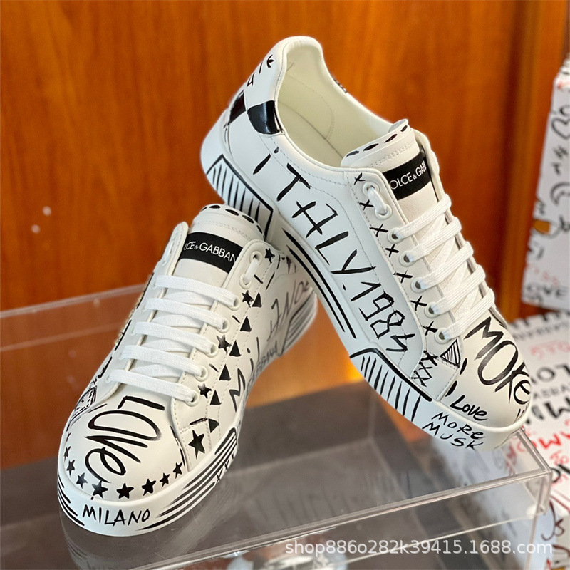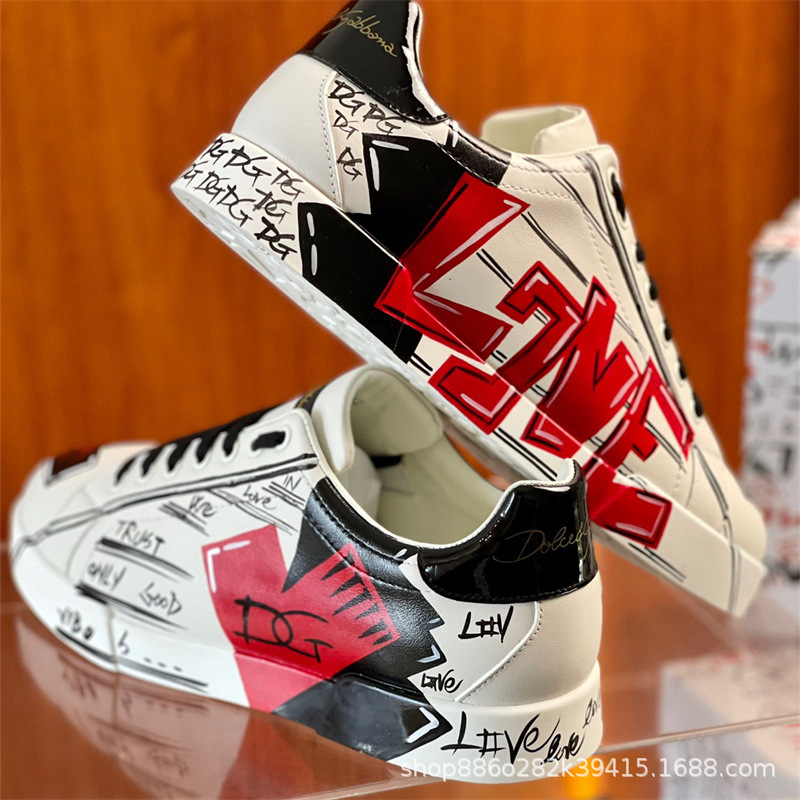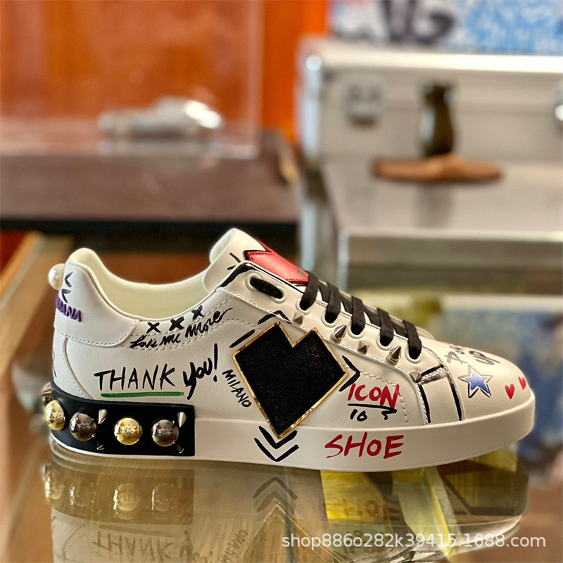 Главная страница > Топ-версия внешней торговли оригинальная одиночная рба с такой же кожаной DG2023 заклепки граффити маленькие белые туфли для мужчин