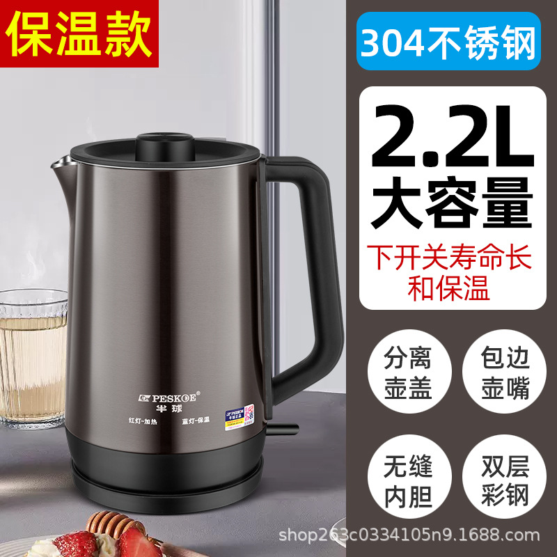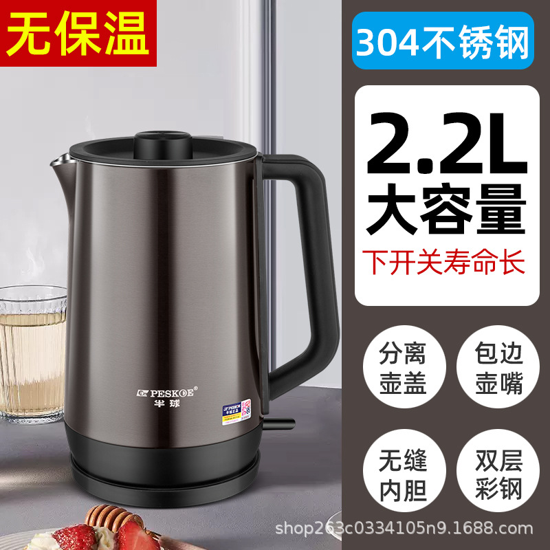 Главная страница > Полусферический электрический чайник бесшовный цельный 304 нержавеющая сталь теплоизоляция бытовой чайник большой емкости автоматический чайник
