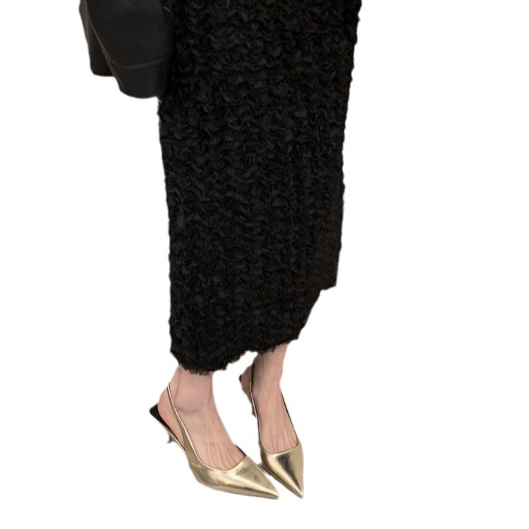 Главная страница > Серебряные туфли на высоком каблуке с острым носком, сандалии большого размера, сказочные туфли 2025, новые весенне-летние туфли во французском стиле с открытой спинкой