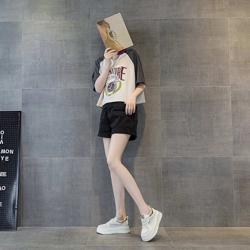 Распродажа 812-5: Женские повседневные кроссовки на толстой подошве с увеличением роста, белые, в стиле колор-блок, для студентов, без возможности возврата или обмена, маленький размер