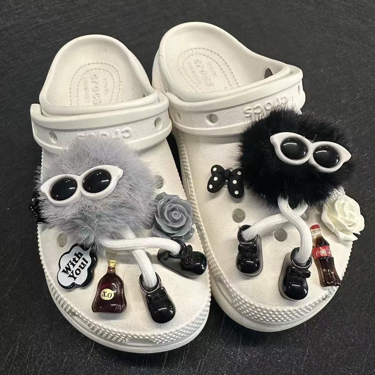 [Меховой шарик в черно-серых очках] Набор пряжек для обуви.